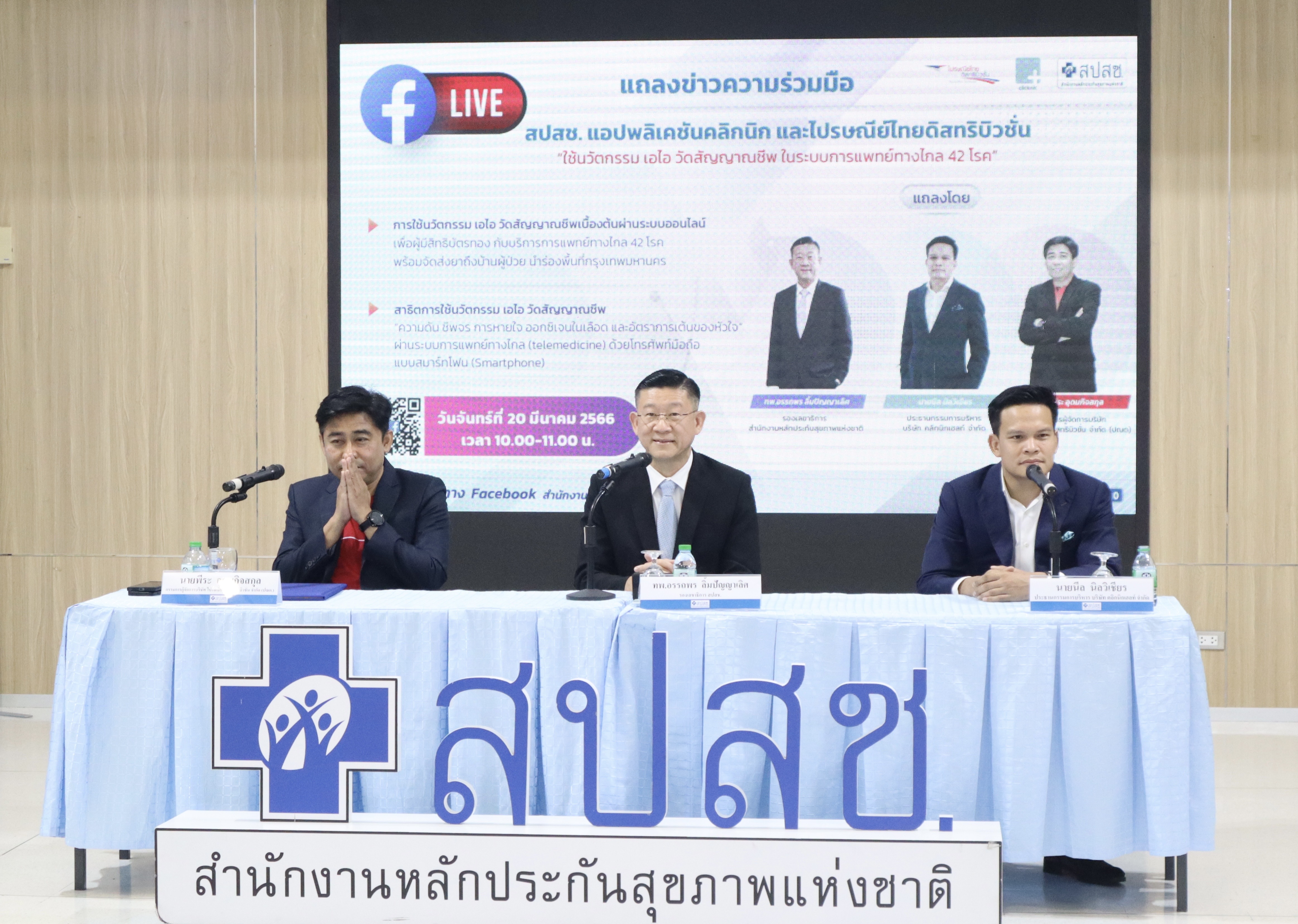 เมื่อวันที่ 20 มีนาคม 2566 - สำนักงานหลักประกันสุขภาพแห่งชาติ (สปสช.) และ บริษัท คลิกนิก เฮลท์ จำกัด ผู้ให้บริการการแพทย์ทางไกล (Telemedicine) ผ่านแอปพลิเคชัน"คลิกนิก"(Clicknic) พร้อมด้วย บริษัท ไปรษณีย์ไทยดิสทริบิวชั่น จำกัด (ปณด)ให้บริการจัดส่งยาแก่ผู้ป่วยทั่วประเทศ ได้แถลงข่าวความร่วมมือ “ใช้นวัตกรรม เอไอ วัดสัญญาณชีพ ในระบบการแพทย์ทางไกล 42 โรค” เพื่อดูแลประชาชนผู้มีสิทธิหลักประกันสุขภาพแห่งชาติ หรือ บัตรทอง 30 บาท โดยเตรียมนำร่องให้บริการผู้ป่วยในพื้นที่กทม.ผ่านแอปพลิเคชัน "คลิกนิก"เวอร์ชั่นใหม่เริ่มเดือน เมษายน 2566 ก่อนที่จะขยายเพิ่มในพื้นที่ปริมณฑลและจังหวัดอื่นในปีต่อๆไป